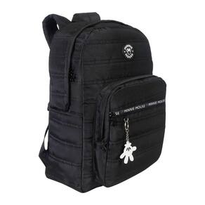 Características do produto Mochila de costas: Triplo compartimento Zíper resistente de alta qualidade Frente com detalhe e logo emborrachada Alças acolchoadas e confortáveis Bolso frontal amplo Fechamento em zíper com puxadores personalizados Laterais com bolso para garrafa Material durável Modelagem leve e espaçosa Chaveiro personalizado