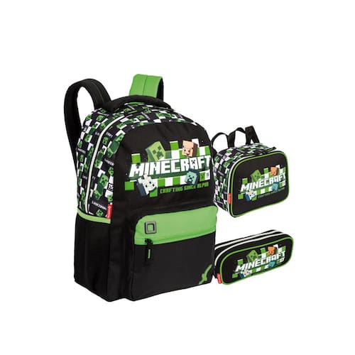 Kit Mochila Costas Minecraft Game Lancheira Estojo Escolar - Sestini