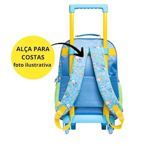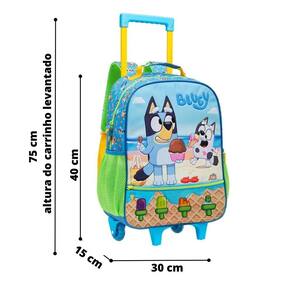 Kit mochila de carrinho escolar com rodinhas lancheira e estojo bluey