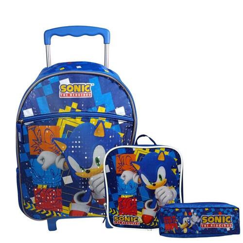 Kit Mochila De Carrinho Lancheira E Estojo Sonic Step It Up Descrição da Mochila: A Mochila do Sonic é perfeita para o dia a dia. É leve, resistente e combina com vários ambientes como escola e passeio. Tenha praticidade e conforto Para transportar todos os seus objetos, com segurança e muito charme. A mochila conta com 01 bolso Principal, 01 bolso frontal grande e 02 bolsos laterais telados para garrafas.