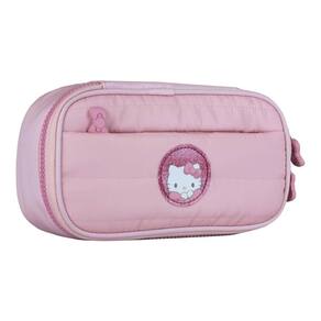 2. Estojo Box Puffer Hello Kitty – Organização com Toque Macio e Brilho Fashion! -Material Nylon em Matelassê; -Etiqueta em PVC com glitter; -Detalhe bordado nas costas; -Puxadores emborrachados; -Zíper tratorado duas cores; -Organizador interno.