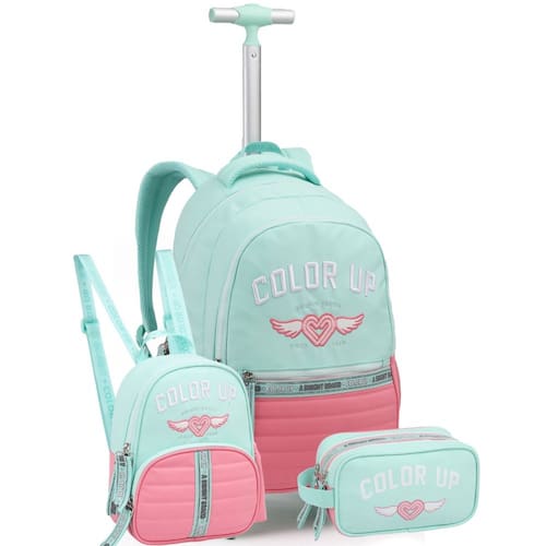 Kit Mochila De Roda 18" Color Up Estojo E Lancheira Térmica - Seanite