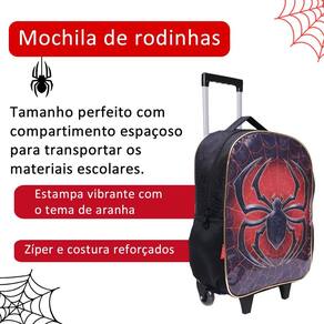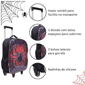 Este incrível kit de mochila de rodinhas infantil masculina é perfeito para os pequenos heróis que precisam estar prontos para qualquer missão Com uma estampa inspirada no famoso herói das teias, este conjunto combina praticidade, conforto e um design super divertido que vai conquistar os fãs de aventuras. Características da Mochila: Mobilidade e Praticidade: Rodinhas resistentes para facilitar o transporte e alça de mão para versatilidade no uso. Espaço Interno Amplo: Compartimento principal grande com zíper, ideal para guardar livros, cadernos e materiais escolares. Bolsos Laterais: Perfeitos para garrafinhas, garantindo hidratação sempre à mão. Detalhes Temáticos: Puxadores de zíper exclusivos e estampa vibrante de uma aranha gigante que remete ao herói Super Aranha. Dimensões da Mochila: 41 cm de altura x 30 cm de largura x 17 cm de profundidade. Capacidade: 21 litros. Lancheira Térmica: Mantém os lanches fresquinhos e organizados, perfeita para as refeições escolares. Dimensões: 22,5 cm de altura x 18 cm de largura x 9 cm de profundidade. Estojo: Compacto e funcional, ideal para guardar lápis, canetas e outros acessórios escolares. Dimensões: 23,5 cm de comprimento x 7 cm de altura. Cuidados com o Produto: Evite carregar excesso de peso para preservar a estrutura e durabilidade. Não utilize objetos pontiagudos ou cortantes que possam danificar o material. Para limpeza, use apenas um pano úmido e sabão neutro; evite produtos abrasivos ou solventes químicos. Este kit é o companheiro perfeito para aventuras diárias na escola, proporcionando organização, conforto e um toque de diversão com o tema do super-herói favorito dos meninos Marca: Não Informado