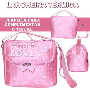 Kit Mochila de Rodinha Bolsa Estojo e Lancheira Coração Este lindo kit de mochila de rodinhas infantil feminina é perfeito para acompanhar as pequenas em todas as aventuras escolares e do dia a dia. Com um design encantador cheio de corações, este conjunto une praticidade, conforto e estilo. Características da Mochila: Versatilidade: Conta com rodinhas resistentes para facilitar o transporte e alças de costas acolchoadas e ajustáveis para maior conforto. Funcionalidade: Possui uma alça de mão prática e um compartimento principal espaçoso com uma divisão interna para manter tudo organizado. Bolsos Práticos: Um bolso externo com zíper para acesso rápido a itens essenciais e bolsos laterais perfeitos para garrafinhas ou pequenos objetos. Detalhes Encantadores: Os puxadores de zíper em formato de coração combinam perfeitamente com a estampa cheia de coraçõezinhos, tornando o kit ainda mais fofo. Dimensões: 42 cm de altura x 30 cm de largura x 18 cm de profundidade. Capacidade: 25 litros. Lancheira: Mantém os lanchinhos sempre organizados e acessíveis. Dimensões: 23 cm de altura x 17 cm de largura x 15 cm de profundidade. Estojo: Ideal para guardar lápis, canetas e outros materiais escolares. Dimensões: 23,5 cm de altura x 16 cm de largura x 6,8 cm de profundidade. Cuidados com o Produto: Evite carregar excesso de peso para preservar a estrutura da mochila. Não insira objetos pontiagudos ou cortantes para evitar danos ao material. Para limpeza, utilize apenas um pano úmido com sabão neutro; não use abrasivos ou solventes químicos. Com este kit incrível, as crianças vão adorar organizar seus materiais com estilo e praticidade. Um presente perfeito para acompanhar o dia a dia com conforto e diversão Marca: Não Informado
