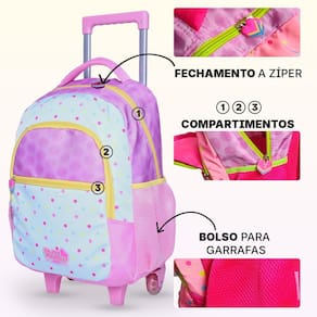 Kit Mochila De Rodinha Escolar Infantil Menina Estojo - Rosa