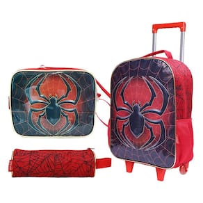 Kit Mochila De Rodinha Estojo Lancheira Aranha - Vermelho