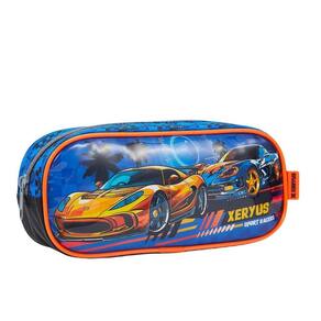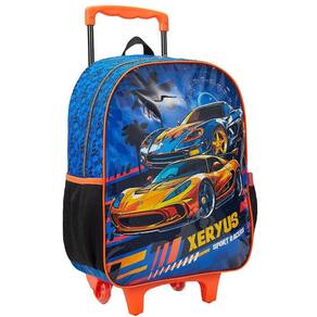 Kit Mochila de rodinhas, lancheira e estojo Xeryus. A mochila conta com frente em PVC, puxadores de metal, alça de mão em nylon, e rodinhas em gel. Lancheira com alça de mão em nylon, alça de costas ajustáveis, frente em PVC e etiquetas personalizadas. O estojo conta com frente em PVC e puxadores em metal, além de etiquetas personalizadas .