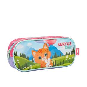 Kit Mochila de rodinhas, lancheira e estojo Xeryus. A mochila conta com frente em PVC, puxadores de metal, alça de mão em nylon, e rodinhas em gel. Lancheira com alça de mão em nylon, alça de costas ajustáveis, frente em PVC e etiquetas personalizadas. O estojo conta com frente em PVC e puxadores em metal, além de etiquetas personalizadas .