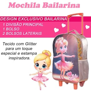 Delicadeza e encanto definem o kit de mochila de rodinhas feminina Com um design em rosa vibrante e glitter sutil, complementado pela estampa de uma linda bailarina, este kit é perfeito para meninas que adoram brilhar e expressar sua paixão pela dança. Características da Mochila: Estilo Elegante: Rosa com glitter suave e estampa de uma bailarina encantadora, trazendo charme e leveza ao dia a dia escolar. Praticidade e Conforto: Rodinhas resistentes para facilitar o transporte. Alça de mão para maior versatilidade. Dois bolsos laterais ideais para garrafas ou itens pequenos de fácil acesso. Espaço e Organização: Compartimento principal grande com zíper, perfeito para armazenar livros, cadernos e outros materiais. Bolso externo adicional para organização extra. Dimensões: 41 cm de altura x 30 cm de largura x 17 cm de profundidade. Características da Lancheira: Isolamento Térmico: Mantém os alimentos frescos e protegidos para a hora do lanche. Divisão Única: Espaçosa e prática para armazenar refeições e snacks. Dimensões: 22,5 cm de altura x 18 cm de largura x 9 cm de profundidade. Características do Estojo: Compacto e Funcional: Divisão única para organizar lápis, canetas e outros acessórios escolares. Dimensões: 23,5 cm de comprimento x 7 cm de altura. Por que escolher este kit Design Encantador: A combinação de glitter, rosa e a delicada bailarina tornam este kit um verdadeiro sonho para as pequenas. Funcionalidade Completa: Espaço ideal para manter tudo organizado e à mão, além de materiais duráveis para o uso diário. Praticidade e Elegância: Perfeito para meninas que amam estilo e funcionalidade em um só produto. Transforme o dia a dia escolar em um verdadeiro espetáculo Este kit é a escolha perfeita para meninas que desejam brilhar com graça e praticidade. Marca: Não Informado Ean: 9412903209991