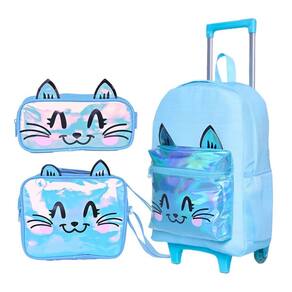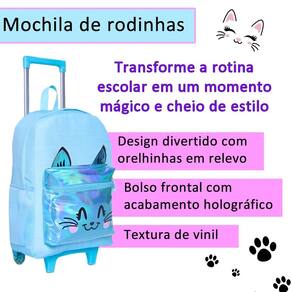 Este kit de mochila de rodinhas feminina é a combinação perfeita de encanto, praticidade e estilo Com um design encantador em rosa com glitter sutil, estampa fofa de gatinho e detalhes holográficos no bolso externo, ele é ideal para meninas que amam brilhar e se destacar. Características da Mochila: Design Encantador: Rosa com glitter suave e estampa de um adorável gatinho que conquista corações. O bolso externo com detalhes holográficos dá um toque moderno e mágico. Praticidade e Conforto: Rodinhas resistentes para facilitar o transporte. Alça de mão funcional para maior versatilidade. Dois bolsos laterais perfeitos para garrafas ou itens de fácil acesso. Organização Essencial: Compartimento principal amplo para guardar materiais escolares. Bolso externo com zíper para itens menores. Dimensões: 41 cm de altura x 30 cm de largura x 17 cm de profundidade. Características da Lancheira: Isolamento Térmico: Mantém os lanches frescos e prontos para o consumo. Praticidade em Tamanho Compacto: Uma divisão espaçosa para alimentos e bebidas. Dimensões: 22 cm de comprimento x 6,5 cm de altura. Características do Estojo: Compacto e Prático: Divisão única perfeita para armazenar lápis, canetas e pequenos acessórios escolares. Dimensões: 23,5 cm de comprimento x 7 cm de altura. Por que escolher este kit Estilo Encantador: O glitter, o gatinho e os detalhes holográficos tornam este kit um acessório único e adorável para qualquer ocasião. Funcionalidade e Conforto: Com espaço suficiente e design prático, ele é perfeito para manter tudo organizado. Durabilidade Garantida: Feito com materiais de alta qualidade, é ideal para acompanhar as crianças em sua rotina diária. Leve brilho e fofura para o dia a dia escolar Este kit é perfeito para meninas que desejam unir estilo, praticidade e um toque mágico em cada detalhe. Marca: Não Informado