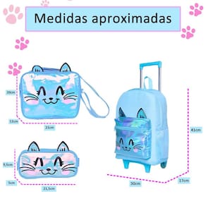 Este kit de mochila de rodinhas feminina é a combinação perfeita de encanto, praticidade e estilo Com um design encantador em rosa com glitter sutil, estampa fofa de gatinho e detalhes holográficos no bolso externo, ele é ideal para meninas que amam brilhar e se destacar. Características da Mochila: Design Encantador: Rosa com glitter suave e estampa de um adorável gatinho que conquista corações. O bolso externo com detalhes holográficos dá um toque moderno e mágico. Praticidade e Conforto: Rodinhas resistentes para facilitar o transporte. Alça de mão funcional para maior versatilidade. Dois bolsos laterais perfeitos para garrafas ou itens de fácil acesso. Organização Essencial: Compartimento principal amplo para guardar materiais escolares. Bolso externo com zíper para itens menores. Dimensões: 41 cm de altura x 30 cm de largura x 17 cm de profundidade. Características da Lancheira: Isolamento Térmico: Mantém os lanches frescos e prontos para o consumo. Praticidade em Tamanho Compacto: Uma divisão espaçosa para alimentos e bebidas. Dimensões: 22 cm de comprimento x 6,5 cm de altura. Características do Estojo: Compacto e Prático: Divisão única perfeita para armazenar lápis, canetas e pequenos acessórios escolares. Dimensões: 23,5 cm de comprimento x 7 cm de altura. Por que escolher este kit Estilo Encantador: O glitter, o gatinho e os detalhes holográficos tornam este kit um acessório único e adorável para qualquer ocasião. Funcionalidade e Conforto: Com espaço suficiente e design prático, ele é perfeito para manter tudo organizado. Durabilidade Garantida: Feito com materiais de alta qualidade, é ideal para acompanhar as crianças em sua rotina diária. Leve brilho e fofura para o dia a dia escolar Este kit é perfeito para meninas que desejam unir estilo, praticidade e um toque mágico em cada detalhe. Marca: Não Informado Ean: 9402903209992