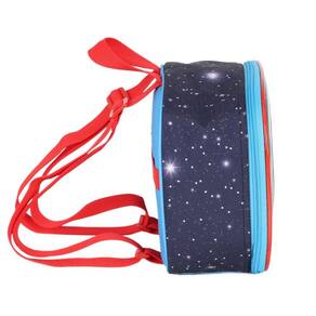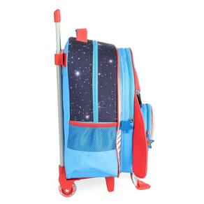 Kit mochila de rodinhas com bolsos laterias em tela com elástico, sem alça de costas, silk frontal, bolso frontal com zíper, alça de mão. Lancheira estampada com alça de costas e alça de mão, além de etiquetas personalizadas. Estojo da mesma estampa.