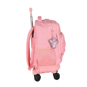 O kit inclui: Mochila de Rodinha com alça retrátil e rodinhas 360° Lancheira térmica com alça ajustável Estojo com amplo espaço interno