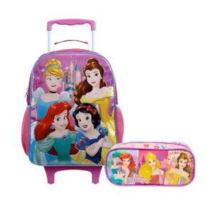 Kit Mochila De Rodinhas E Estojo Princesas Escolar Xeryus Deixe que a magia das princesas da Disney faça parte das aventuras de suas crianças com esse Kit de Mochila com Rodinhas e estojo Princesas. Ele é mais do que um kit de mochilas; é um portal para o mundo dos contos de fadas e a imaginação sem limites com as imagens das amadas princesas da Disney, Cinderela, Bela, Branca de Neve e Ariel, trazendo a magia dos contos de fadas para a vida real.. O Kit inclui uma Mochila com Rodinhas e um Estojo, garantindo que as crianças estejam preparadas para a escola, passeios ou qualquer aventura. Tudo o que é necessário em um único conjunto. MOCHILA - produzida em cetim estampado. - Painel frontal em cetim vincado. - Possui compartimento principal amplo - Possui Bolsos laterais telados - Carrinho em metal com travas. - Acompanha puxadores personalizados - alça de mão em nylon com poliester e piping forrado - Tamanho aproximado: 35x27x14cm ESTOJO - Tamanho aproximado: 22x10x7cm - Marca: Xeryus - Cor: Rosa - Cód.: X11560 Conteúdo da Embalagem: - 01 Mochila De Rodinhas+ 01 Estojo Simples 7893284133396