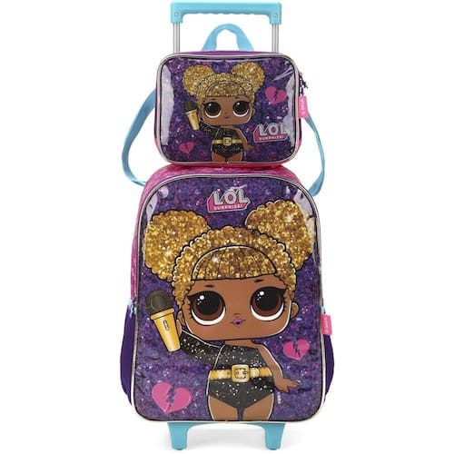 KIT MOCHILA DE RODINHAS E LANCHEIRA LUXCEL LOL SURPRISE