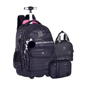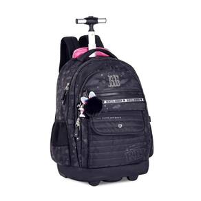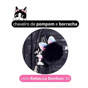 A mochila de rodinha é a escolha perfeita para quem precisa carregar muitos pertences para a escola, faculdade, viagens, clube etc. Confeccionadas em nylon com estampa holográfica. Chaveiro de pompom com orelhinhas arco-íris, coração em acrílico e mascote em 3D. Cadarço acetinado logado.