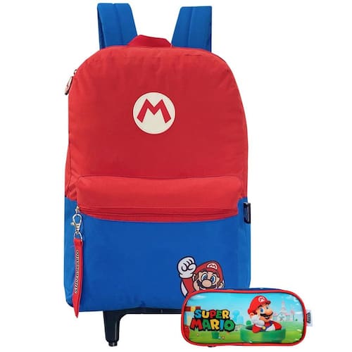 Kit super mario mochila de rodinhas com estojo escolar. O novo kit do super mario conta com uma mochila de rodinhas e um estojo escolar. Perfeito para seu filho levar para a escola, o kit combina estilo e utilidade para o material escolar.