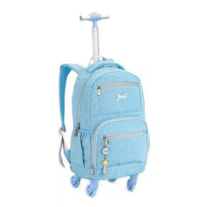 Sobre a mochila: A mochila de rodinhas é confeccionada em poliéster resistente, com acabamento impecável. Possui duas alças de ombro acolchoadas para maior conforto e uma alça superior.