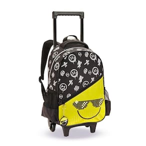 Kit Mochila de Rodinhas + Lancheira + Estojo Duplo Emoji DENLEX -