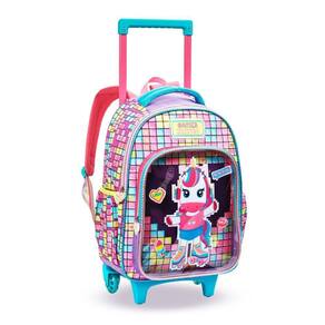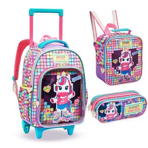 Kit Mochila de Rodinhas + Lancheira Térmica + Estojo Duplo Unicórnio Gamer DENLEX -