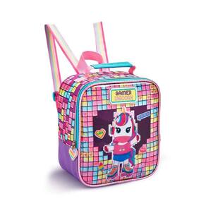 - 1 Kit Mochila de Rodinhas + Lancheira Térmica + Estojo Duplo Unicórnio Gamer DENLEX