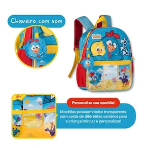 O Kit Escolar Galinha Pintadinha com Mochila de Costas e Lancheira Térmica é perfeito para as crianças que amam a turminha mais famosa do YouTube A mochila de costas GP25056 é confeccionada em poliéster durável e leve, com detalhes em patch de pelúcia e bordado, oferecendo um toque macio e acabamento premium. Seu compartimento principal espaçoso comporta todos os materiais escolares com praticidade, enquanto o bolso frontal transparente vem com cards ilustrados de diferentes cenários, para brincar, trocar e personalizar a mochila como quiser Possui bolsos laterais em tela, ideais para garrafinhas, alças de costas acolchoadas e ajustáveis, além de alça de mão reforçada, proporcionando conforto e segurança. Acompanha a lancheira térmica GP25057, feita com material térmico de fácil limpeza, fechamento por zíper, alça carona para acoplar na mochila e alças reguláveis. A frente em PVC com alto relevo traz os personagens da Galinha Pintadinha em um visual colorido e encantador, deixando o momento do lanche ainda mais divertido. Um kit completo, resistente e cheio de estilo, que une organização, conforto e o toque lúdico que as crianças adoram Dimensões da mochila: 33x27x12cm Lancheira: 24x17x10cm. Marca: Não Informado