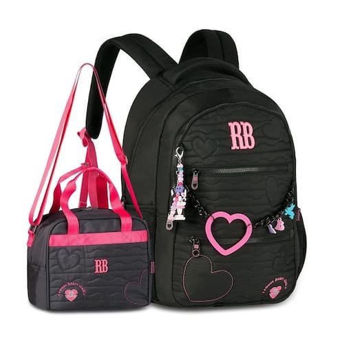 O kit Rebecca Bonbon une sofisticação, praticidade e estilo em duas peças que encantam tanto pela beleza quanto pela funcionalidade. Ideal para adolescentes modernas que amam moda e para pais que buscam qualidade e durabilidade, esse conjunto é perfeito para acompanhar a rotina escolar ou passeios. A mochila premium Rebecca Bonbon é confeccionada em material soft com acabamento matelassê em formato de corações, disponível em cores irresistíveis: preto, rosa e roxo. Além do amplo compartimento principal com espaço para notebook, ela conta com dois bolsos frontais com zíper, bolsos laterais telados e bolso antifurto na parte traseira. Acompanha ainda chaveiro exclusivo de miçangas com mascote 3D, corrente estilizada com coração emborrachado e puxadores personalizados. Suas alças acolchoadas, ajustáveis e confortáveis, junto à alça carona e à alça de mão reforçada, garantem praticidade no transporte. A lancheira térmica coordenada é o complemento perfeito. Com espaço interno amplo e revestimento térmico que mantém os alimentos frescos por mais tempo, ela conta com três opções de uso: alça de mão, alça de ombro ajustável e alça carona para acoplar na mochila. Seu design segue a mesma linha sofisticada da coleção, criando um conjunto harmonioso e cheio de estilo. Dimensões aproximadas: Mochila: 44x33x14cm e Lancheira: 20x24x14cm Marca: Não Informado