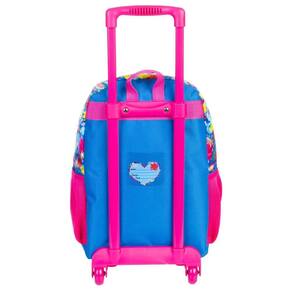 Confeccionada em poliéster Possui 1 bolso central para materiais escolares Possui 1 bolso frontal para outros materiais Possui 2 bolsos laterais para garrafinha e pequenos objetos Carrinho de alumínio, facilitando o transporte Identificador no verso Dimensões: Altura: 47cm X Largura: 30cm X Profundidade: 14cm
