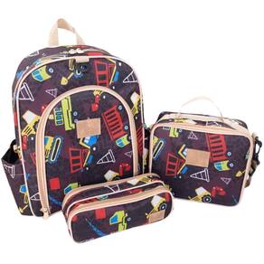 Kit mochila escolar infantil completo menina menino bolsa resistente com lancheira e estojo de 2 compartimentos - miellu Estampa: brinquedos Kit mochila infantil