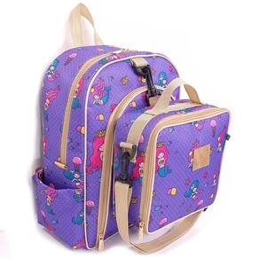Kit mochila escolar infantil completo menina menino bolsa resistente com lancheira e estojo de 2 compartimentos - miellu Estampa: sereia Kit mochila infantil