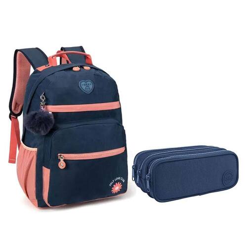 Mochila Escolar Infantil KK24M14 Azul Rosa - Kika