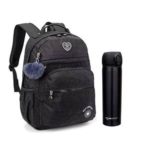 Kit Mochila Escolar Infantil kk24M14PT e Garrafa de Água 97826 400ml Preta - Kika