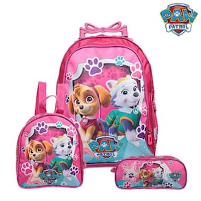 Kit Mochila Escolar Infantil Sky e Everest Patrulha Canina De Rodinha, acompanha lancheira e estojo. Agora você pode levar sua mochila da Sky e Everest no seu dia a dia ou acompanhar você na escola. Possui alça de mão reforçada. Sua abertura maior se dá por zíper com puxador. Na parte de dentro possui amplo espaço para a guardar diversos materiais como cadernos, livros e estojos. Na parte da frente, possui bolso com zíper para a guardar pertences de menor tamanho, e bolsos laterais. Características: Especificações: - Alça superior - Estampa no bolso frontal - Puxador retrátil- Zíper metálico- Bolso Lateral Medidas Lancheira:- Altura: 22cm- Largura: 20cm Medidas Mochila: - Altura: 41cm- Largura: 15cm- Comprimento: 31cm Dúvidas Frequentes:1. A mochila possui rodinhas em siliconeR. Sim, ela possui rodinhas em silicone transparente. 2. Ela possui alça retrátilR. Sim, ela possui alça retrátil para ocupar menos espaço. 3. Ela possui quantas divisõesR. Ela possui 02 divisões para guardar suas coisas. 4. Qual o material da mochilaR. Ela é feita em poliéster e plástico. Tags:Mochila, escola, escolar, meninos, meninas, infantil, rodinha, material, personagem, sky, everest, patrulha canina, cachorros, marshal, Ryder. Marca: Toys 2U