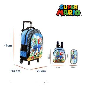 Kit Mochila Escolar Infantil Super Mario E Luigi Com Rodinhas, acompanha lancheira e estojo. Agora você pode levar sua mochila do Super Mario no seu dia a dia ou acompanhar você na escola. Possui alça de mão reforçada. Sua abertura maior se dá por zíper com puxador. Na parte de dentro possui amplo espaço para a guardar diversos materiais como cadernos, livros e estojos. Na parte da frente, possui bolso com zíper para a guardar pertences de menor tamanho, e bolsos laterais.Características:Especificações: - Alça superior - Estampa no bolso frontal - Puxador retrátil- Zíper metálico- Bolso LateralMedidas Lancheira:- Altura: 22cm- Largura: 20cmMedidas Estojo:- Altura: 10cm- Comprimento: 23cmMedidas Mochila: - Altura: 41cm- Largura: 15cm- Comprimento: 31cmDúvidas Frequentes:1. A mochila possui rodinhas em siliconeR. Sim, ela possui rodinhas em silicone transparente.2. Ela possui alça retrátilR. Sim, ela possui alça retrátil para ocupar menos espaço.3. Ela possui quantas divisõesR. Ela possui 02 divisões para guardar suas coisas.4. Qual o material da mochilaR. Ela é feita em poliéster e plástico.Tags:Mochila, escola, escolar, meninas, meninos, infantil, rodinha, material, personagem, super mario, nintendo, luigi, jogos. Marca: Toys 2U