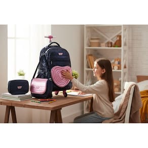 METALIZADISSIMA!! ESSA MOCHILA DE RODINHA JUNTOU O METALIZADO QUE A GENTE AMA E UMA MODELAGEM PERFEITA QUE CABE TODO O MATERIAL ESCOLAR! ELA POSSUI PUXADORES PERSONALIZADOS, BOLSOS FRONTAIS, BOLSOS LATERAIS COM ZÍPER, CARRINHO EMBUTIDO COM DOIS NÍVEIS DE EXPANSÃO E BOTÃO DE TRAVA. O CARRINHO TEM 4 RODAS COM GIRO EM 360?. MEDIDAS: 55cm x 34cm x 22cm
