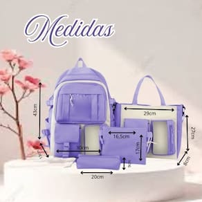 Prontinha para o dia a dia das pequenas! Nosso Kit Infantil 4 em 1 chegou com tudo: mochila grande com espaço para o notebook, estojo, bolsa e uma mini bolsa lateral super versátil!