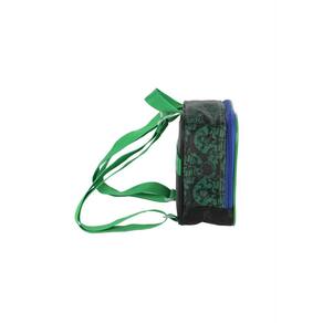 MOCHILA Cor verde escuro Possui 1 bolso central amplo para cadernos e livros Possui 1 bolso frontal para outros materiais Possui 2 bolsos laterais Carrinho Painel Frontal em PVC Bolso Frontal com Puxador Personalizado Bolsos Laterais em Redinha com Elástico Alça de Mão Identificador no Verso Produzido em Poliéster Dimensões: Altura: 41cm X Largura: 30cm X Profundidade: 14cm