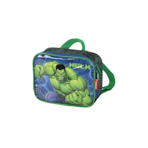 A Mochila Grande com Bolso Hulk Produzida em poliéster, material muito resistente e painel frontal em PVC, que facilita a limpeza do produto. Possui alça de costas espumadas, bolso frontal com puxador de zíper personalizado, alça de mão, bolsos laterais em redinha com elástico para deixar seus itens prediletos sempre à mão e identificador no verso para colocar seu nome.