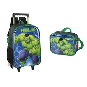 Kit Mochila Escolar De Rodinha Com Lancheira Térmica Hulk + Lancheira Marvel Cor: verde Tamanho: Unico Genero: Unissex