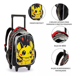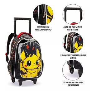 Características do produto: mochila de rodinha - Composição: 70% Poliéster 30% PVC - Rodinhas de silicone de alta resistência - 2 bolsos laterais para garrafa e objetos pequeno - Alças reforçada - Alças de ombro acolchoadas - Alça de mão acolchoada - Puxadores de zíper personalizada - Identificador no verso - Tamanho com rodinhas aproximado: 41,5cm x 29cm x 17,5cm - Altura total com haste puxado: 75cm