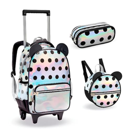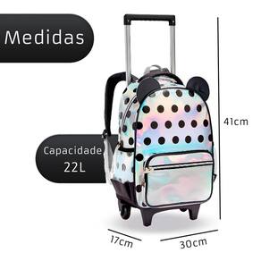 Mochila de Rodinha: Deixe a diversão começar com alças acolchoadas que garantem o conforto durante todo o dia e rodinhas de silicone suaves para deslizar suavemente pelo corredor da escola.
