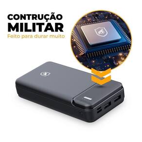 Seu design robusto e durável, com construção militar e materiais de qualidade, torna o Carregador Portátil Armor feito para durar muito tempo, sendo o parceiro ideal para enfrentar todas as suas aventuras diárias.