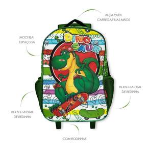 01 Kit Mochila de Rodinha Dinossauro com 3 Peças na cor Verde