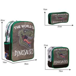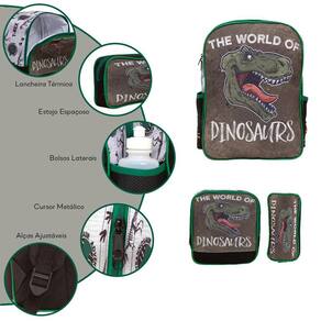 Kit Mochila Escolar Infantil Dinossauro, acompanha lancheira e estojo. Possui alça de mão reforçada. Agora você pode levar sua mochila no seu dia a dia ou acompanhar você na escola. Sua abertura maior se dá por zíper com puxador. Na parte de dentro possui amplo espaço para a guardar diversos materiais como cadernos, livros e estojos. Na parte da frente, possui bolso com zíper para a guardar pertences de menor tamanho e bolsos laterais.