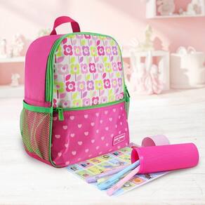 Kit Mochila Infantil + Porta Acessórios Jacki Design Pink Flor