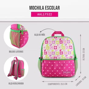 Kit Mochila Infantil + Porta Acessórios Jacki Design PINK FLOR -