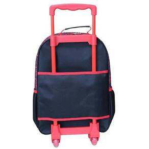 Mochila Dermiwill ideal para comportar materiais e todos os objetos necessários para a fase escolar, bolsos laterais em mesh para garrafinha, haste dupla e colorida, bolso frontal com zíper grande, rodinha de gel e etiquetas personalizadas. Lancheira versátil que pode ser levado à escola passeios, shopping, parques entre outros. Conta com alça de ombro regulável, elástico interno e atrás e etiquetas personalizadas