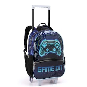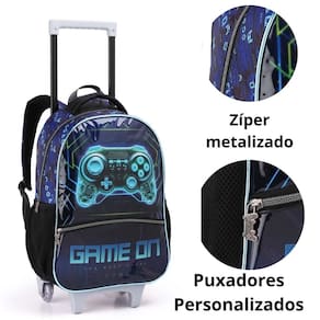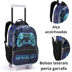Design Temático de Jogos: A mochila apresenta um design moderno e energético, com gráficos e detalhes inspirados em videogames, capturando a essência de mundos digitais e aventuras eletrizantes.