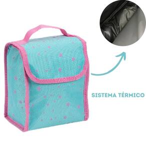 A Lancheira, parte integrante do kit, permite que as crianças tenham refeições deliciosas e saudáveis durante o dia escolar. Ela mantém os alimentos frescos e é fácil de transportar, proporcionando um toque prático ao conjunto.
