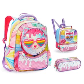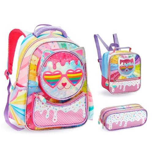Facilite a vida da sua filha com este kit escolar completo! A mochila garante conforto e praticidade, a lancheira térmica mantém a alimentação fresquinha e o estojo organiza todos os materiais. Além disso, o design holográfico da gatinha vai encantar qualquer criança!